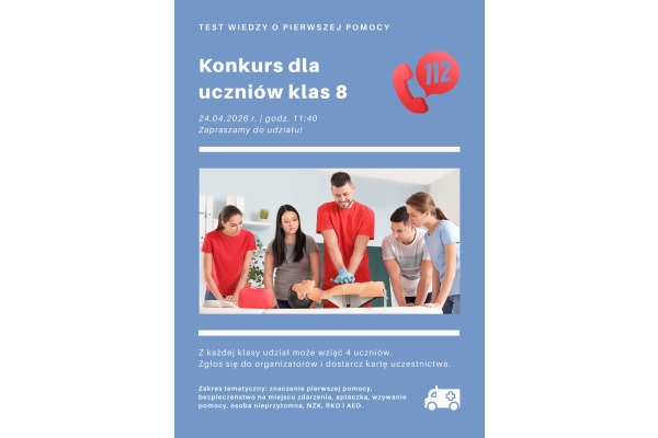 Konkurs dla kl. 8 „TEST WIEDZY O PIERWSZEJ POMOCY”