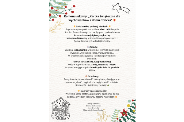 Konkurs szkolny "Kartka świąteczna dla wychowanków z domu dziecka"