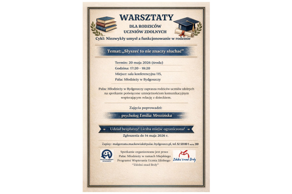 Warsztaty dla rodziców uczniów zdolnych pt. "Słyszeć to nie znaczy słuchać"