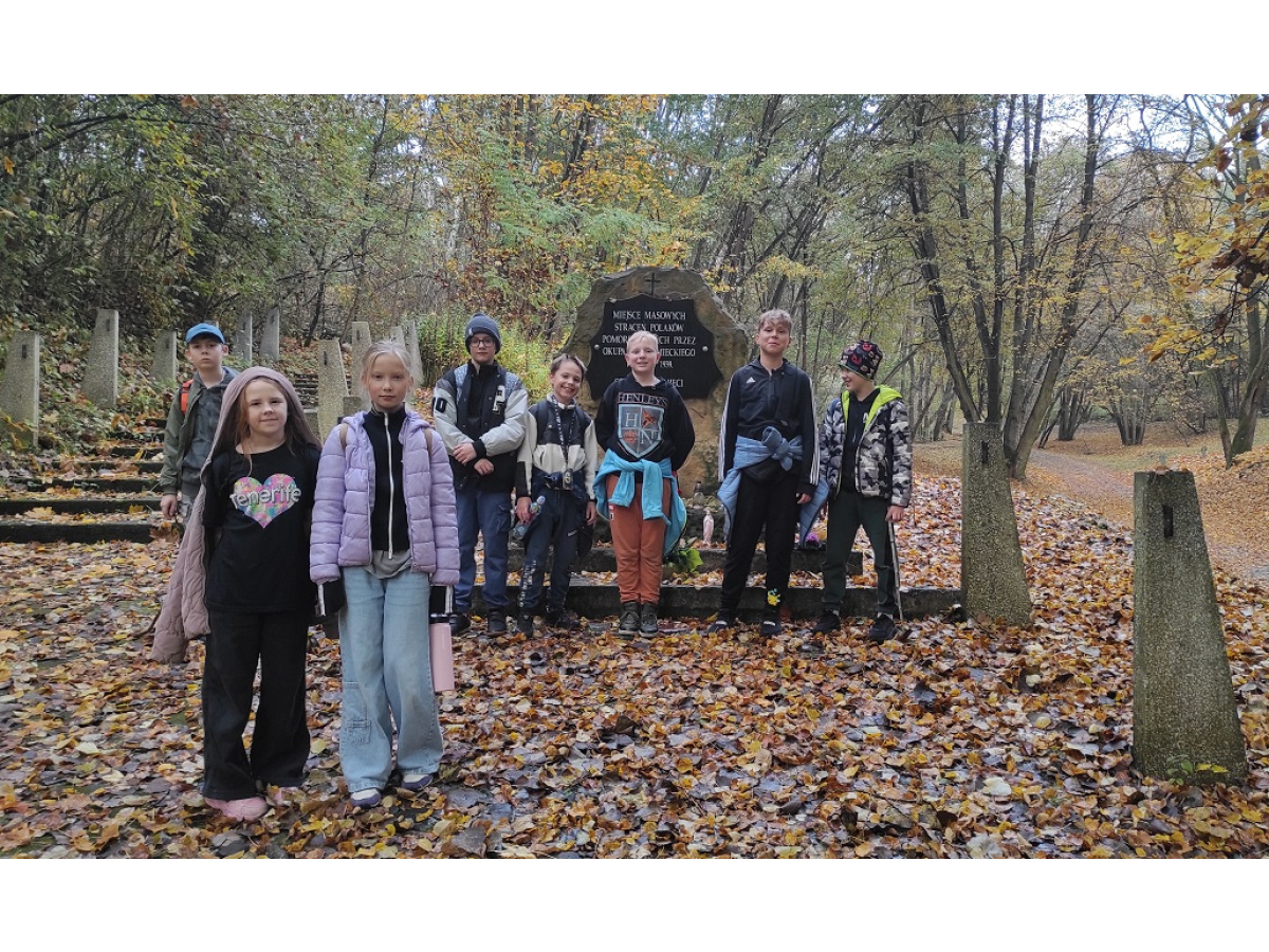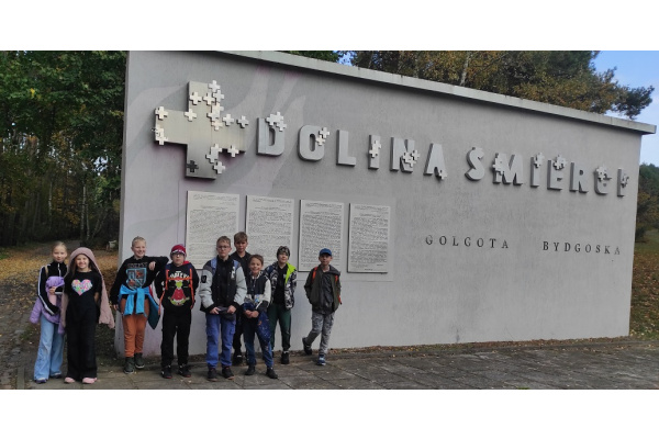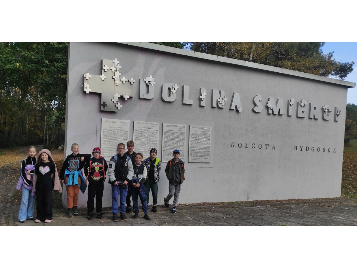 Członkowie Klubu Młodego Historyka wraz z opiekunką, panią Joanną Ratajczak, w październikowe popołudnie udali się do fordońskiej Doliny Śmierci, Kalwarii Bydgoskiej Golgoty XX wieku. I choć poznawanie Małej Ojczyzny wpisane jest w nasze zajęcia, to termin odwiedzin Doliny Śmierci w Fordonie nie był przypadkowy. To bowiem w tym miejscu Niemcy na przełomie października i listopada 1939 roku wymordowali elitę bydgoską. A ważnym zadaniem dla nas jest, abyśmy kultywowali pamięć o tych, którzy zginęli bez żadnej winy. Bo historia, jako świadek czasu, może nas wiele nauczyć. A dla uczniów takie wyjścia poza samą lekcją historii i poznawaniem minionych wydarzeń, to zarazem doskonały czas na integrację i wspólną zabawę.