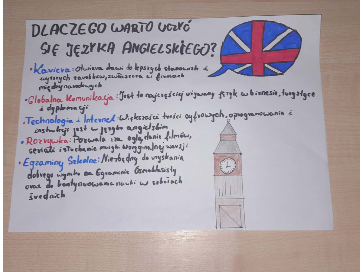 Uczestnicy mieli za zadanie wyjaśnić znaczenie nauki języka angielskiego/ niemieckiego, podkreślając jego rolę w kulturze, komunikacji oraz pozytywnego wpływu na dalszą edukację i rozwijanie zainteresowań.