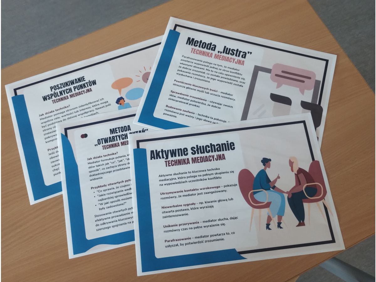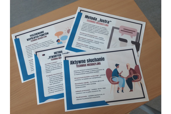 W poniedziałek, 6 października odbył się trzeci blok warsztatów, podczas których kandydaci na mediatorów rówieśniczych poznawali tajniki mediacji. Dowiedzieli się, czym jest monolog mediatora, jakie zasady musi spełniać mediacja, a także jakie techniki należy stosować, aby właściwie przeprowadzić proces porozumienia skłóconych stron.