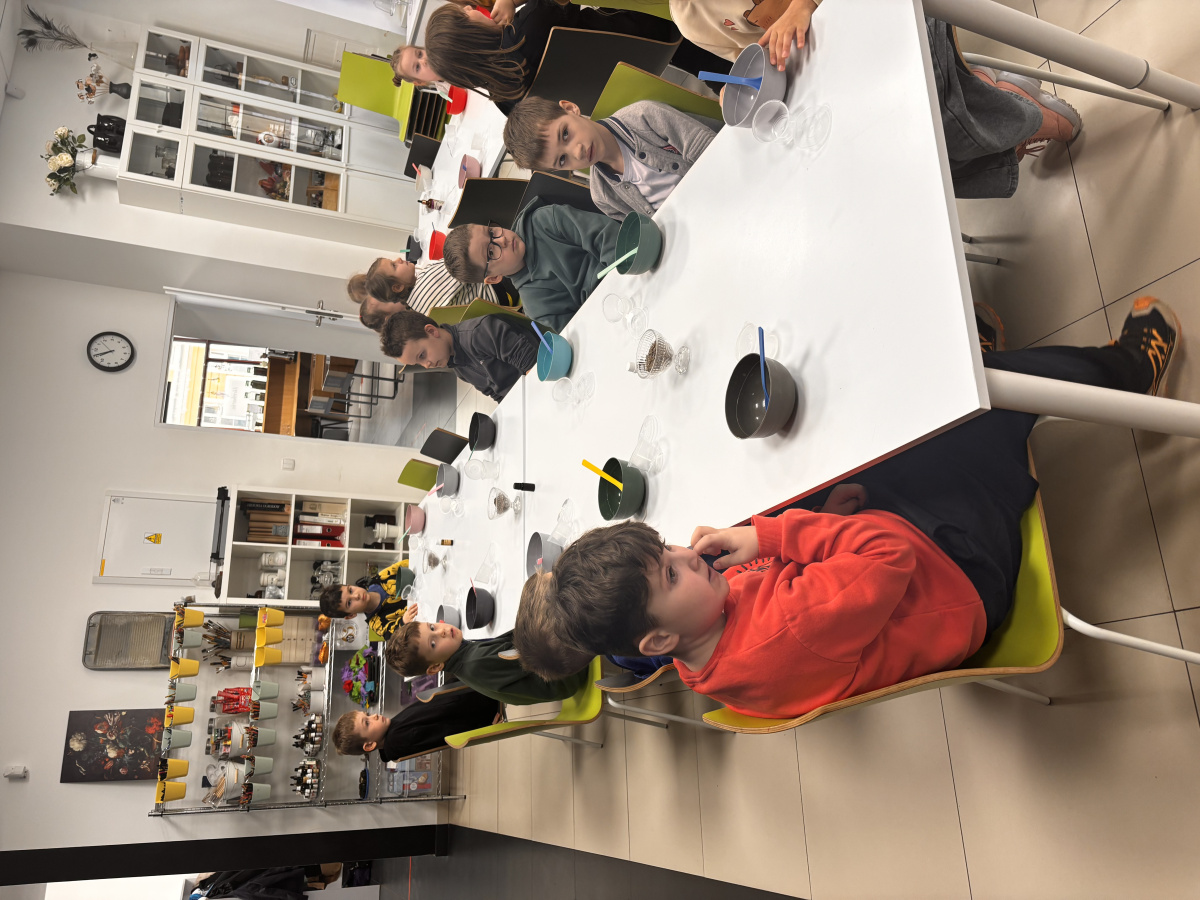 Pan Dariusz nie tylko opowiedział o tajnikach pracy farmaceuty sprzed wielu lat, ale też (za)czarował. Był ogrom ciekawostek, magia i wyciszenie. Na koniec uczniowie uczestniczyli w warsztatach, na których wykonali kule musujące do kąpieli o zapachu lawendy.