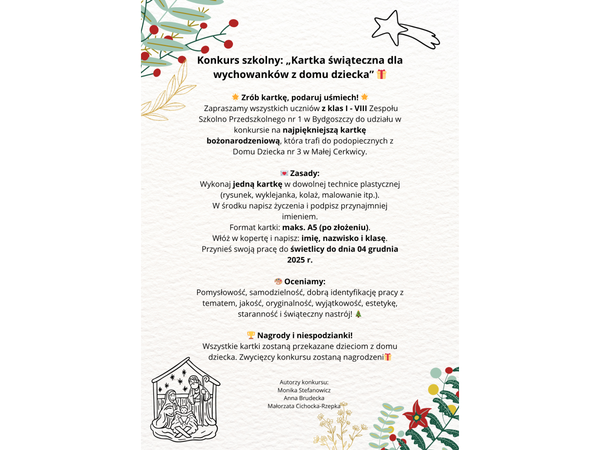 Konkurs szkolny "Kartka świąteczna dla wychowanków z domu dziecka"