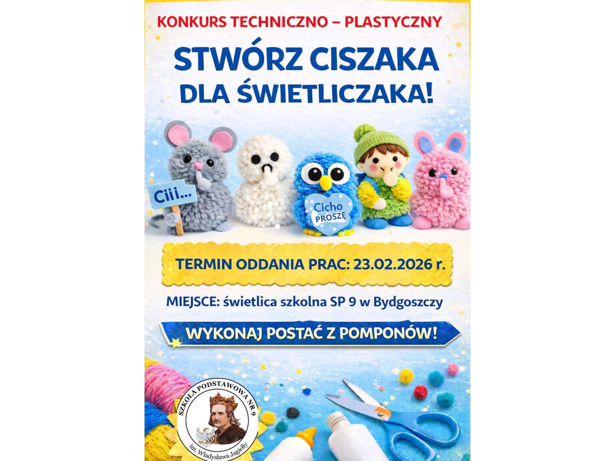 - zadaniem konkursowym jest wykonanie przestrzennej postaci „Ciszaka” z pomponów (własnoręcznie robione/gotowe),