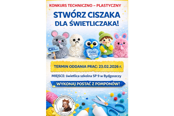 Regulamin konkursu techniczno–plastycznego „STWÓRZ CISZAKA DLA ŚWIETLICZAKA” dla uczniów uczęszczających do świetlicy z fordońskich szkół podstawowych klas I – III.