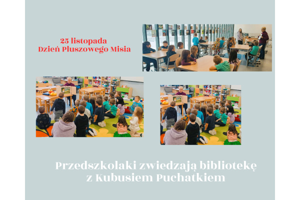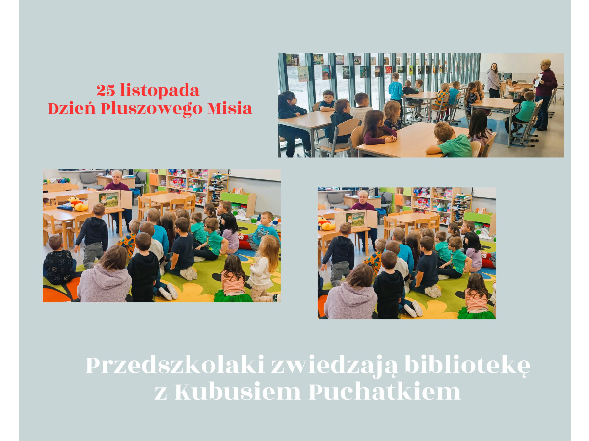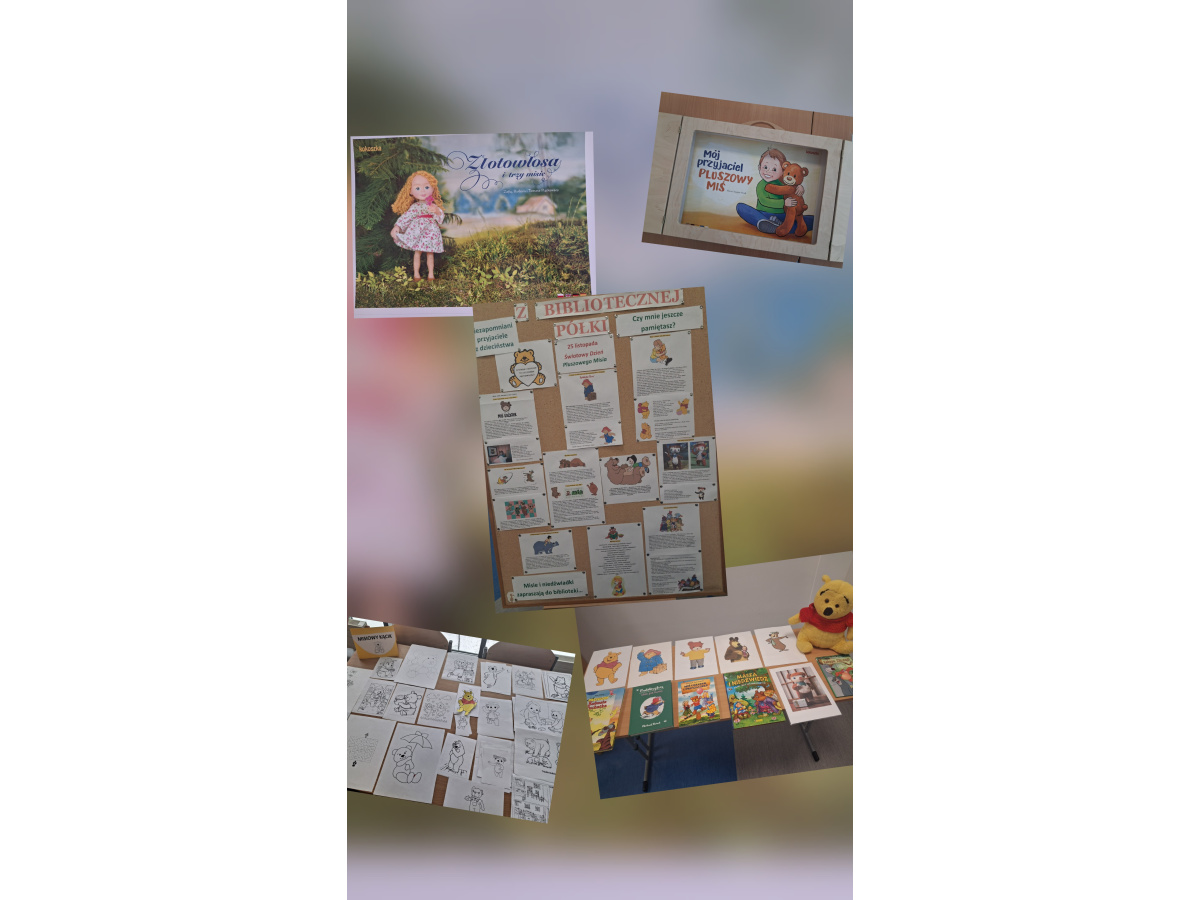 Tak, to prawda. Z okazji Dnia Pluszowego Misia naszą bibliotekę opanowały niedźwiadki. Umieściły się wygodnie na gazetce ściennej i wystawce książek z misiami. Zagościły w „mi-siowym kąciku” z kolorowankami popularnych misiowych postaci z książek. Z Kubusiem Puchatkiem przedszkolaki z grupy „Misie” i „Motylki” zwiedzały bibliotekę. Uczniowie z klas 1 -3 w trakcie spotkań czytelniczych (harmonogram w załączniku) nie tylko poznali książki, których głównymi bohaterami są misie, ale dowiedzieli się kilku rzeczy o prawdzi-wych niedźwiedziach podczas prezentacji multimedialnej. Tradycyjnie już podczas spotkań wykorzystałam teatrzyk Kamishibai. Dzieci przedszkolne i pierwszaki obejrzały bajkę pt. „Złotowłosa i trzy misie”, a uczniowie klas drugich i trzecich zapoznali się z opowieścią o przyjaźni pt. „Mój przyjaciel –miś”. Wszystkie dzieci z entuzjazmem uczestniczyły w zaję-ciach, które kończyły się wyborem przez nie kolorowanki i pracą nad nią. Po powrocie do domu uczniowie mogli się pochwalić rodzicom znajomością wiersza J. Brzechwy pt. „Miś”. Spotkania upłynęły w ciepłej, spokojnej atmosferze. W wyniku tego działania niepomiernie wzrosło zainteresowanie książkami o pluszakach, co przełożyło się na ilość wypożyczanych książek. Bardzo nas to cieszy. Do zobaczenia w bibliotece!