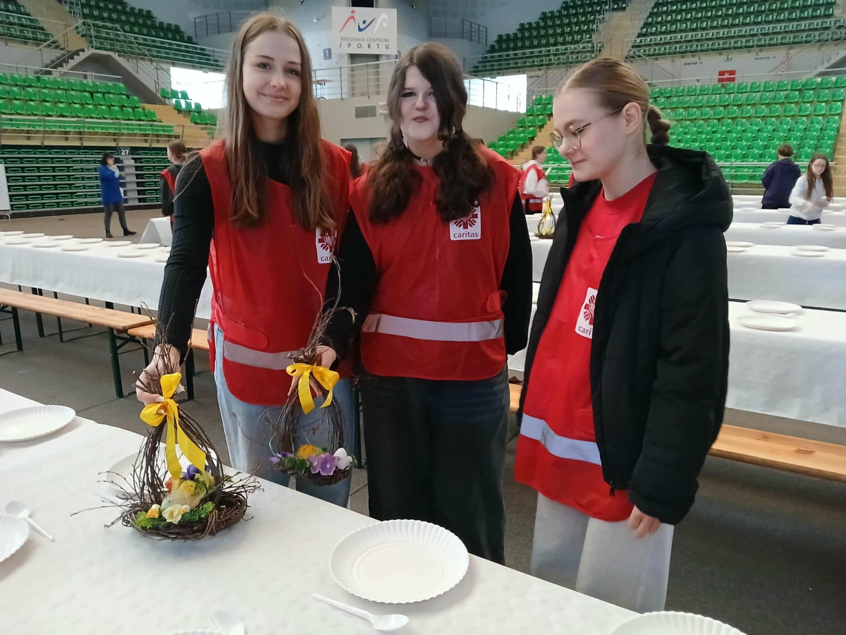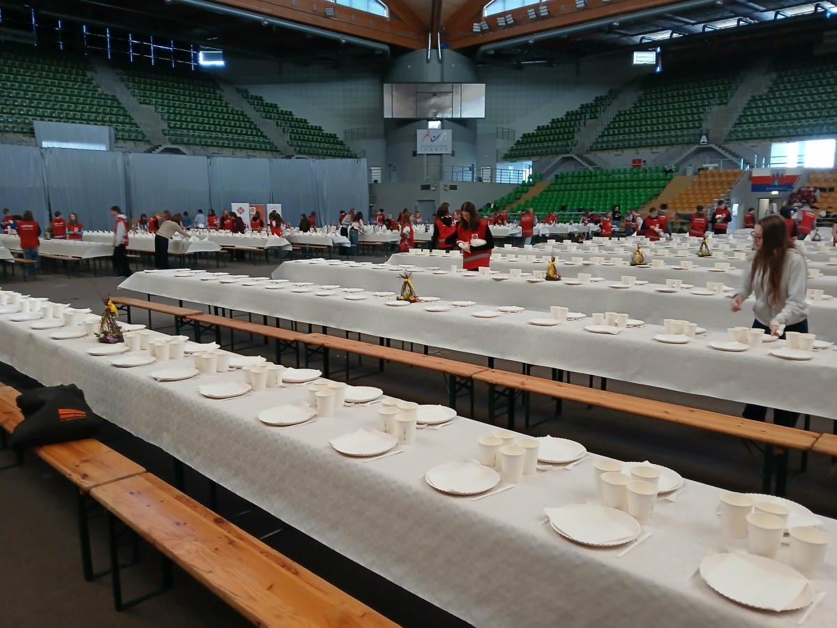 1 kwietnia 2026 r. w hali „Immobile Łuczniczka" odbyło się wyjątkowe wydarzenie – wielkanocny posiłek dla osób potrzebujących. Członkowie naszego Szkolnego Koła Wolontariatu włączyli się w jego przygotowanie, okazując ogromne serce i zaangażowanie. To były piękne chwile współpracy, życzliwości i dzielenia się dobrem z innymi. Po raz kolejny takie inicjatywy pokazują, jak wiele można osiągnąć razem!