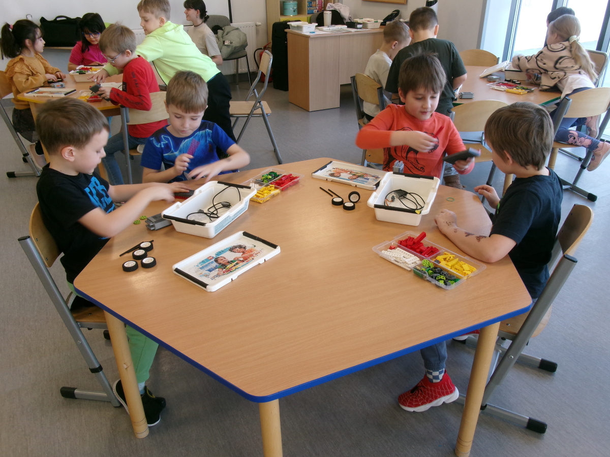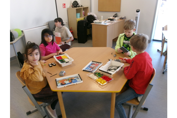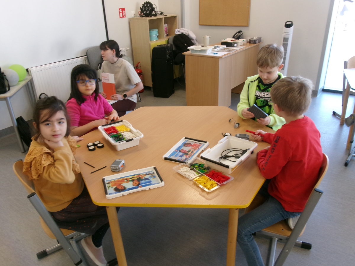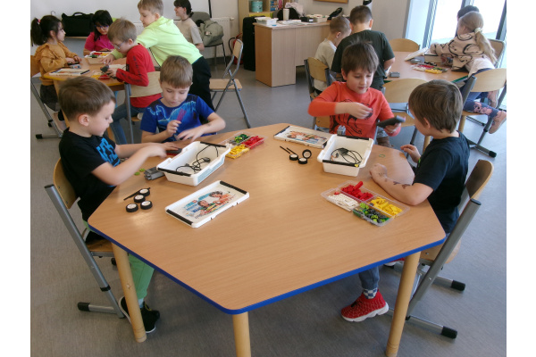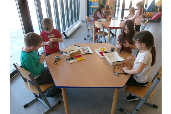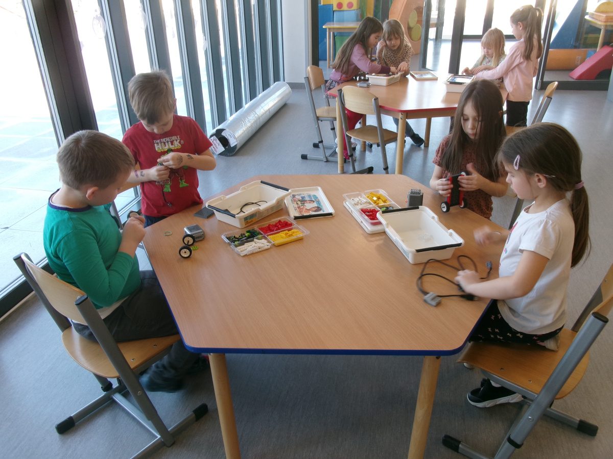 Motylki po raz kolejny wzięły udział w zajęciach z robotyki. Dzieci wysłuchały instrukcji, a następnie w parach skonstruowały pojazdy napędzane akumulatorami.