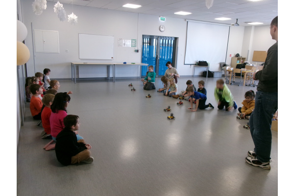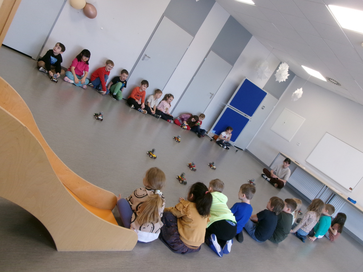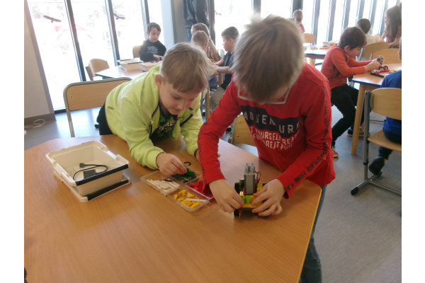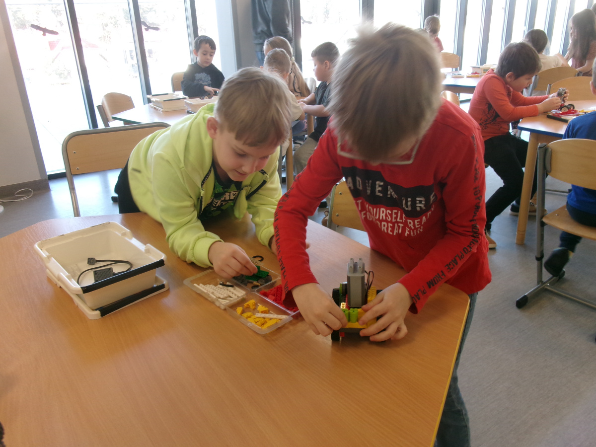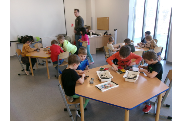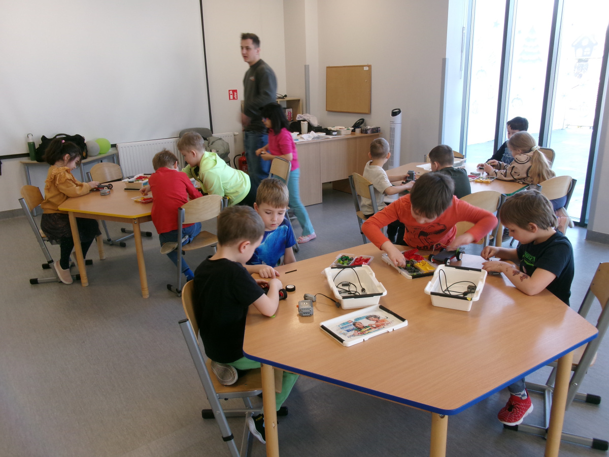 Motylki po raz kolejny wzięły udział w zajęciach z robotyki. Dzieci wysłuchały instrukcji, a następnie w parach skonstruowały pojazdy napędzane akumulatorami.