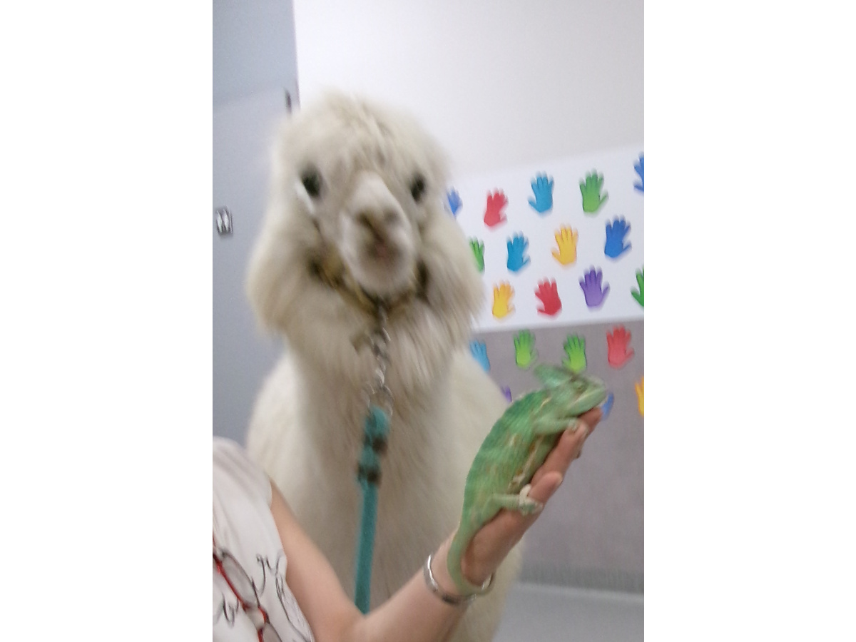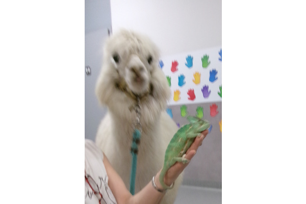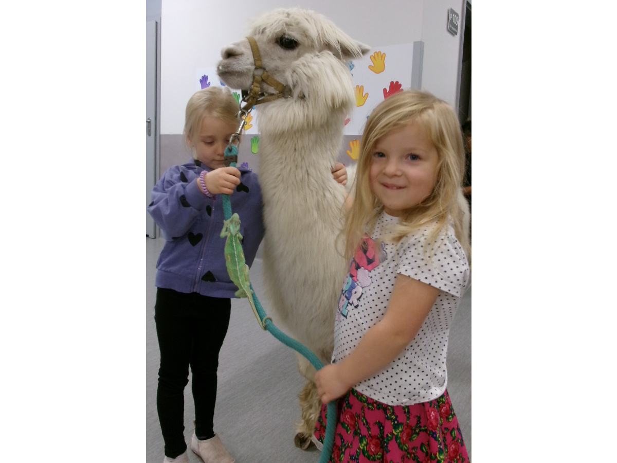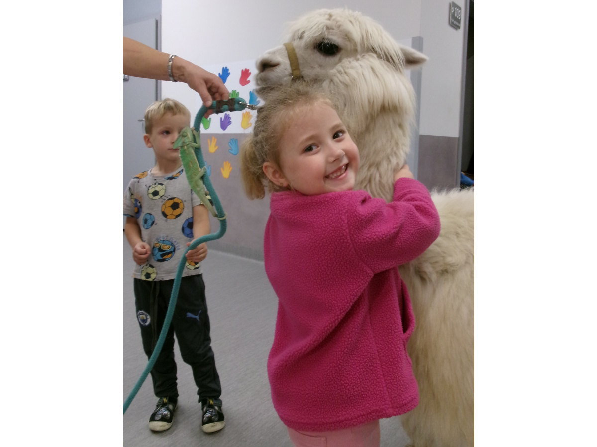 Najwięcej radości sprawiła dzieciom możliwość bezpośredniego kontaktu ze zwierzętami -mogły pogłaskać delikatną sierść alpaki, podać jej marchewkę oraz przyjrzeć się z bliska kameleonowi.