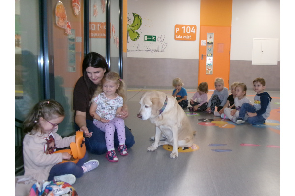 29 września dzieci z grupy Wiewiórek przeżyły niezwykłą przygodę – wzięły udział w zajęciach z dogoterapii z uroczym labradorem. Spotkanie wywołało wiele uśmiechów i radości!