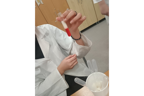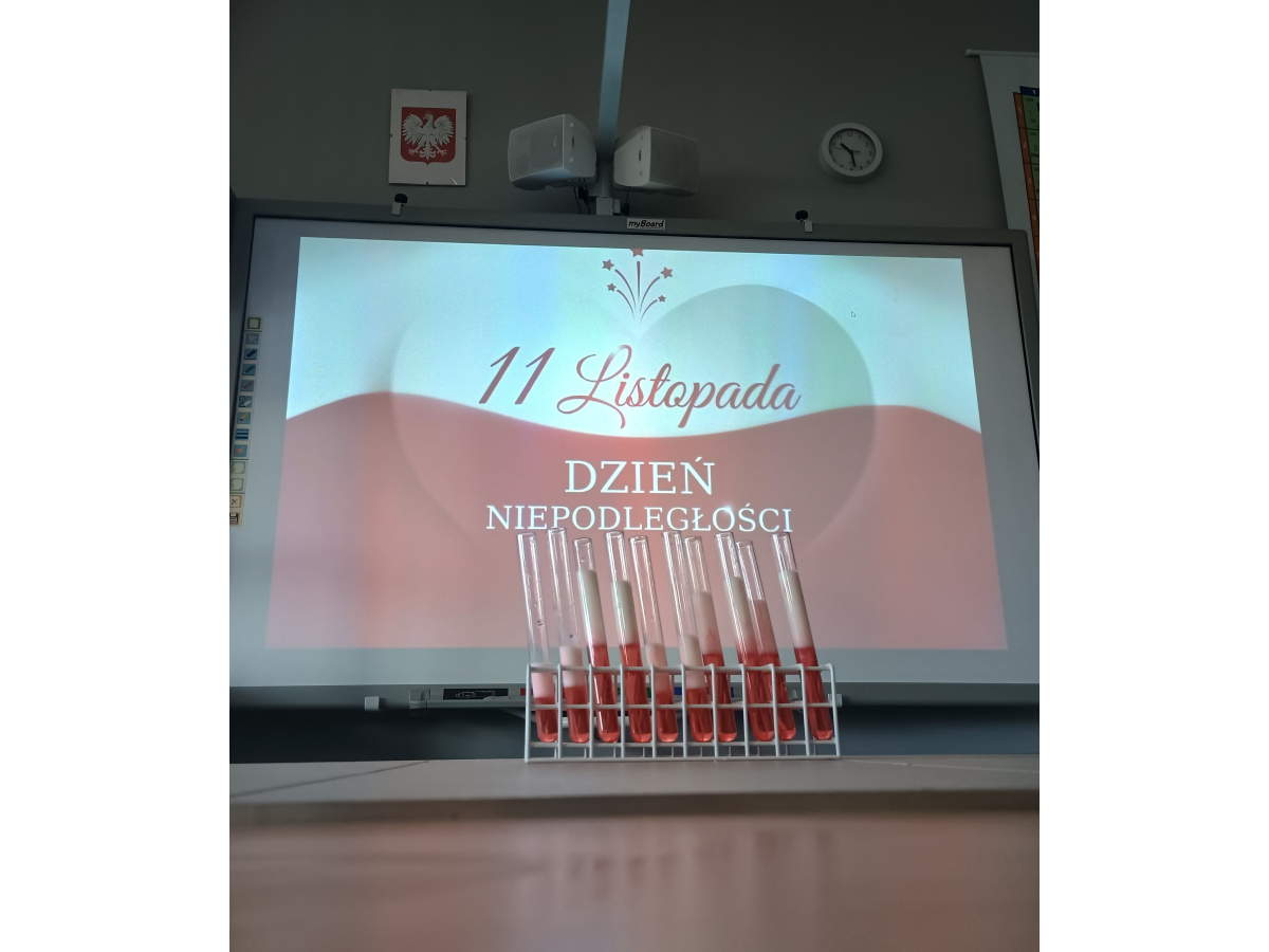 Dnia 12 listopada uczniowie kl. 7s, podczas lekcji chemii połączyli naukę z patriotyzmem, wykonując doświadczenie pt. „Flaga Polski w probówce”. Dla uczczenia Dnia Niepodległości czerwień