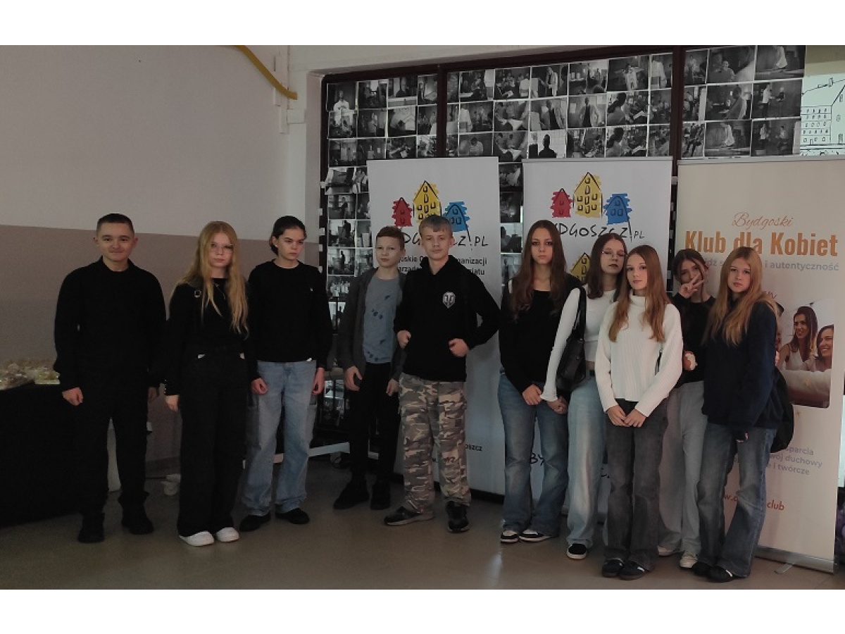 Przedstawiciele Szkolnego Koła Wolontariatu wraz z opiekunem, panią Joanną Ratajczak, uczestniczyli w środę 8 października w uroczystym otwarciu Fordońskiego Centrum Wolontariatu przy ul. Gawędy 5. Otwarcie Centrum Wolontariatu w Fordonie połączone było z 7-leciem istnienia Bydgoskiego Centrum Organizacji Pozarządowych i Wolontariatu w Bydgoszczy. To bardzo ważne, że w największej dzielnicy Bydgoszczy, jaką jest Fordon, powstało miejsce dla młodzieży, w którym będzie mogła ona rozwijać nowe umiejętności, zdobywać kompetencje społeczne i budować relacje z innymi.