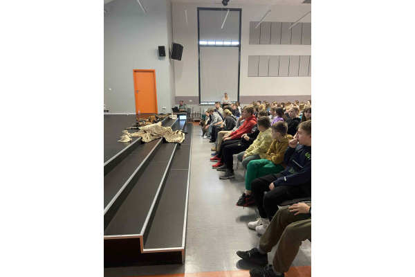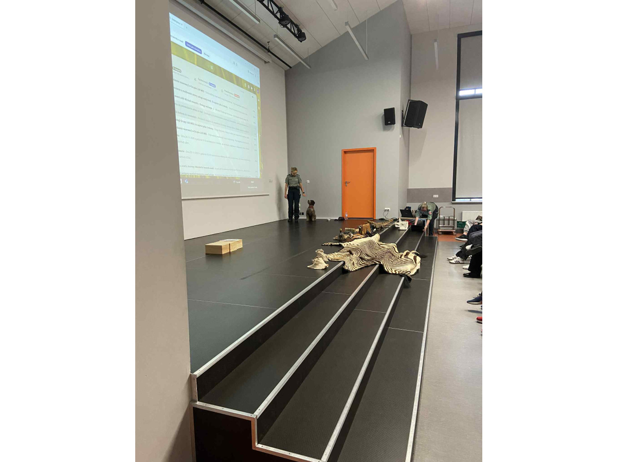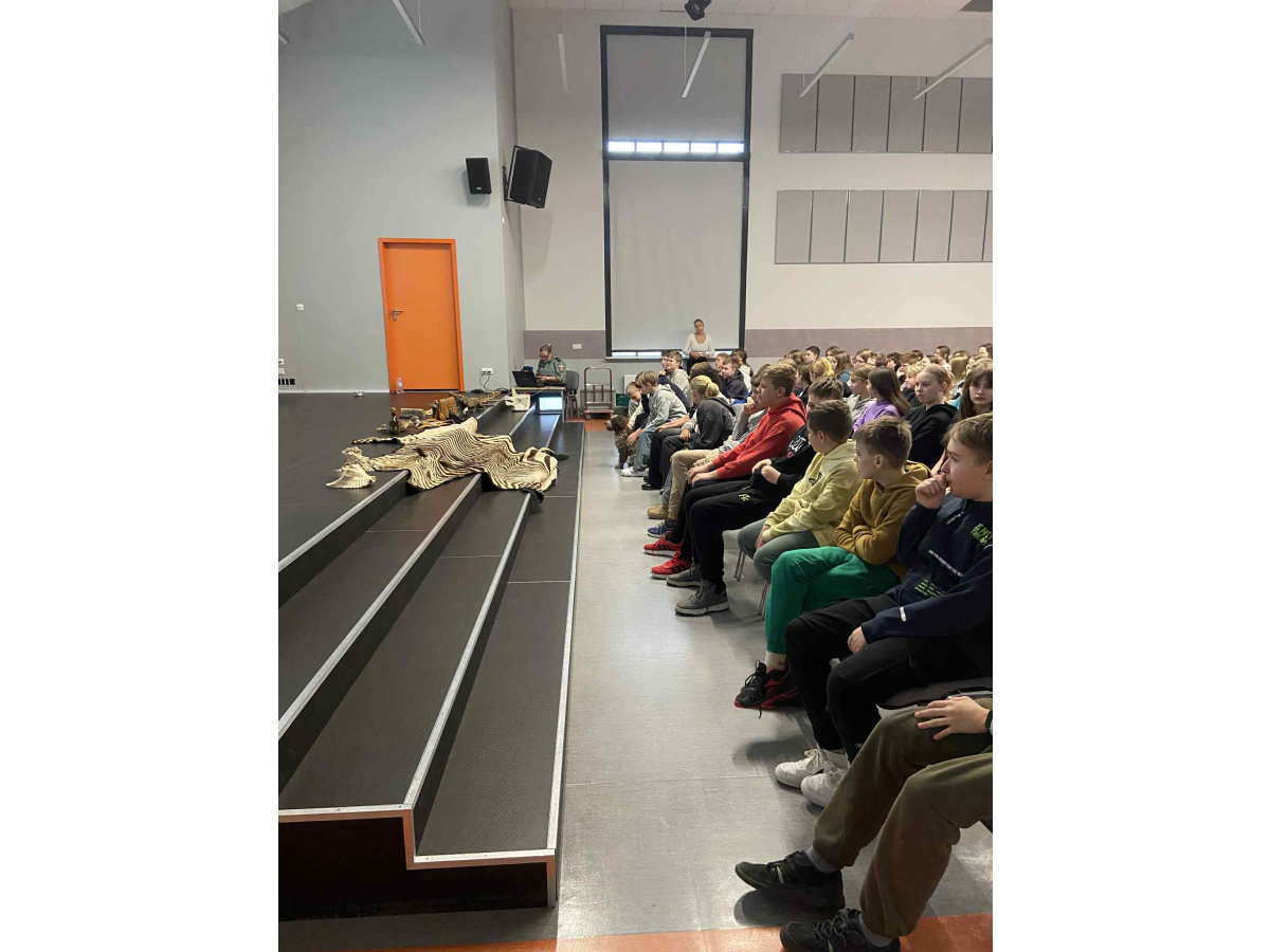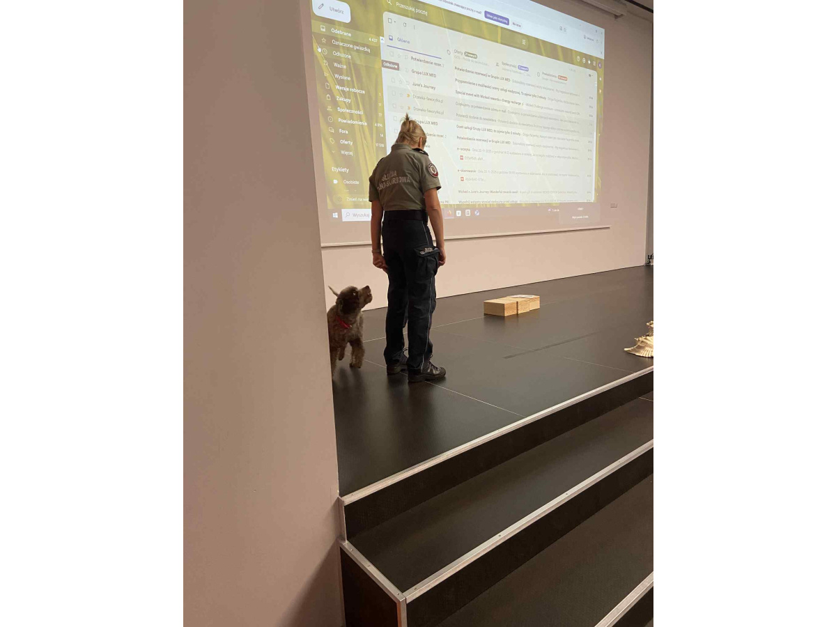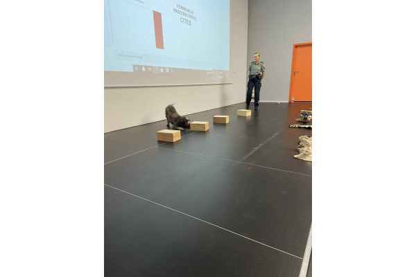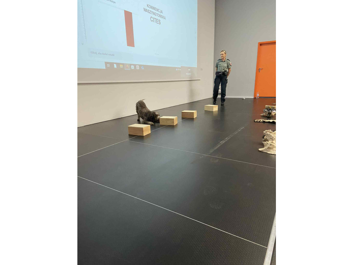 25 listopada gościliśmy w naszej szkole Panie z Kujawsko - Pomorskiego Urzędu Celno - Skarbowego w Toruniu, które przeprowadziły zajęcia dotyczące zagrożonych gatunków roślin i zwierząt. Dzieci dowiedziały się jakich pamiątek nie wolno przywozić z wycieczki z zagranicy. Podczas spotkania odbył się również pokaz pracy psa służbowego. Rubi chętnie pokazywał, jak wykonuję polecenia Pani Joanny i w jaki sposób szuka banknotów. Dzieci klas 6 i klas 2b oraz 2d chętnie uczestniczyły w zajęciach.