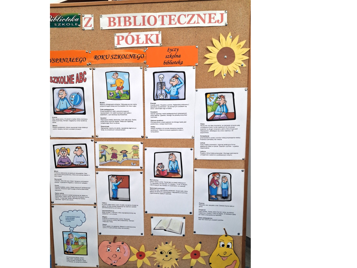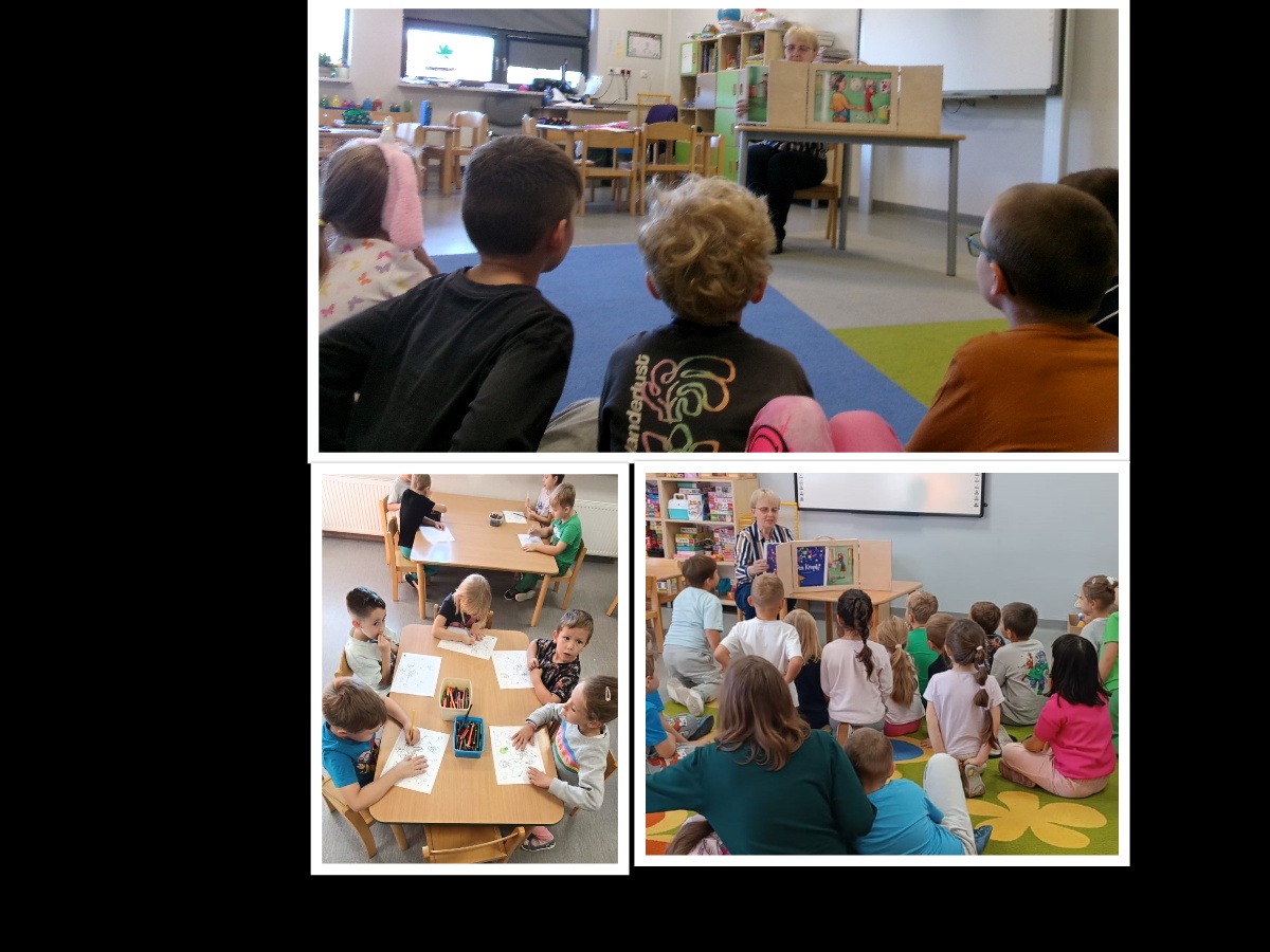Po zaopatrzeniu uczniów w podręczniki i materiały ćwiczeniowe przystąpiłam do realizacji planu pracy biblioteki w tym roku szkolnym. Przygodę z książkami zaczęłam od spotkań z przedszkolakami. Dzieci sześcioletnie wzięły udział w spotkaniu czytelniczym z okazji Dnia Kropki. To święto nietypowe zaakcentowałam przedstawieniem opowieści w teatrzyku Ka-mishibai. Morałem tego spotkania stała się myśl, że nigdy nie należy się poddawać i każde zadanie zaczyna się od przysłowiowej kropki na białej kartce. Dzieci z entuzjazmem obser-wowały akcję opowiadania. Z radością przyjęły też ciekawą kolorowankę dotycząca tematu. W następnym tygodniu do biblioteki zawitały pierwszaki. W trakcie spotkań ze wszystkimi klasami pierwszymi oprowadziłam najmłodszych uczniów po czytelni i magazynie książek beletrystycznych. Zajrzeliśmy do magazynu podręczników i na półki w dziale „księgozbiór podręczny” i „lektury”. Pierwszaki poznały też rolę czytelni szkolnej. Głównym celem tego spotkania było jednak poznanie procedury wypożyczania książek i miejsc, gdzie zgroma-dzone są książki dla uczniów, którzy zaczynają swoją przygodę z czytaniem. Szczególnie podkreślałam rolę porządku w bibliotece, zwracając uwagę na sposób ułożenia książek w bi-bliotece według alfabetu. Wycieczkę zakończyliśmy przy wystawce książek nietypowych w naszej bibliotece. Dzieci z uwagą wysłuchały opowiadania o najgrubszej i najmniejszej książce, o książkach nietypowych (np. audiobook, książka napisana alfabetem Braille’a czy książki bez tekstu). Zapoznały się też z najstarszymi książkami w bibliotece (mają ponad 85 lat!) i najnowszymi nabytkami. Druga część spotkania odbyła się w salach, w których uczą się pierwszaki. W swoich klasach dzieci obejrzały opowieść pt. „Noc w bibliotece” w tea-trzyku Kamishibai. Z przejęciem uczniowie śledziły przygody krasnoludka, który zgubił się w bibliotece i, dzięki ładowi tam panującemu, odnalazł drogę do swojej bajki. Mam na-dzieję, że dzieci wzięły sobie do serca konieczność zachowania porządku także w życiu. Bi-blioteka nie zwalnia tempa działań i w następnych miesiącach przygotowuje nowe niespo-dzianki dla swoich czytelników. Spotkajmy się zatem przy półce z książkami!