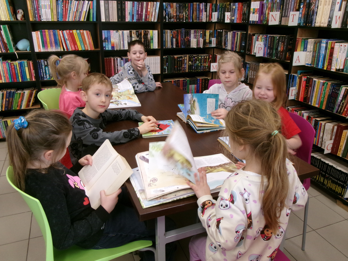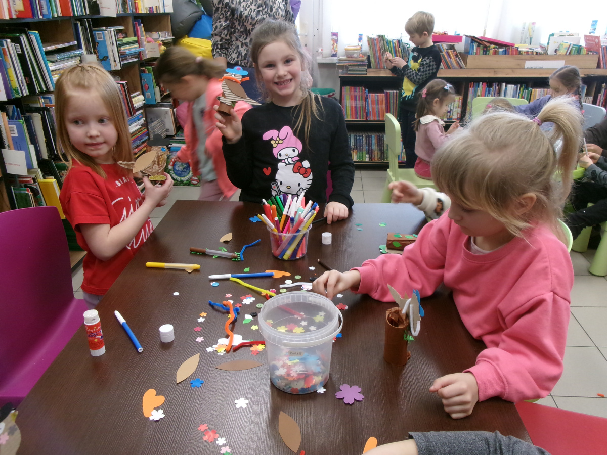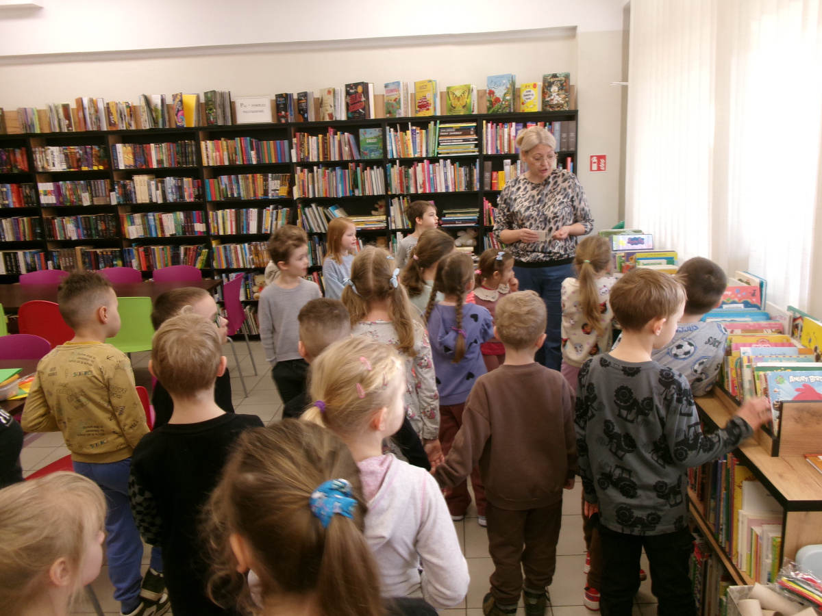 Największą atrakcją okazała się wyprawa między regały pełne kolorowych książek. Dzieci mogły oglądać ilustracje, wyszukiwać znane postacie i odkrywać zupełnie nowe tytuły. Pani bibliotekarka przeczytała nam również krótką opowieść, która wprowadziła wszystkich w bajkowy nastrój. Na podstawie wysłuchanej bajki dzieci wykonały pracę plastyczną: wróbelka Elemelka. To była piękna, inspirująca wycieczka, która pokazała dzieciom, że biblioteka to miejsce pełne przygód, ciekawostek i magicznych historii.