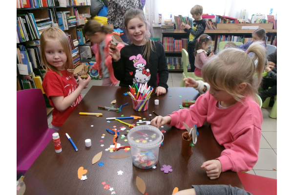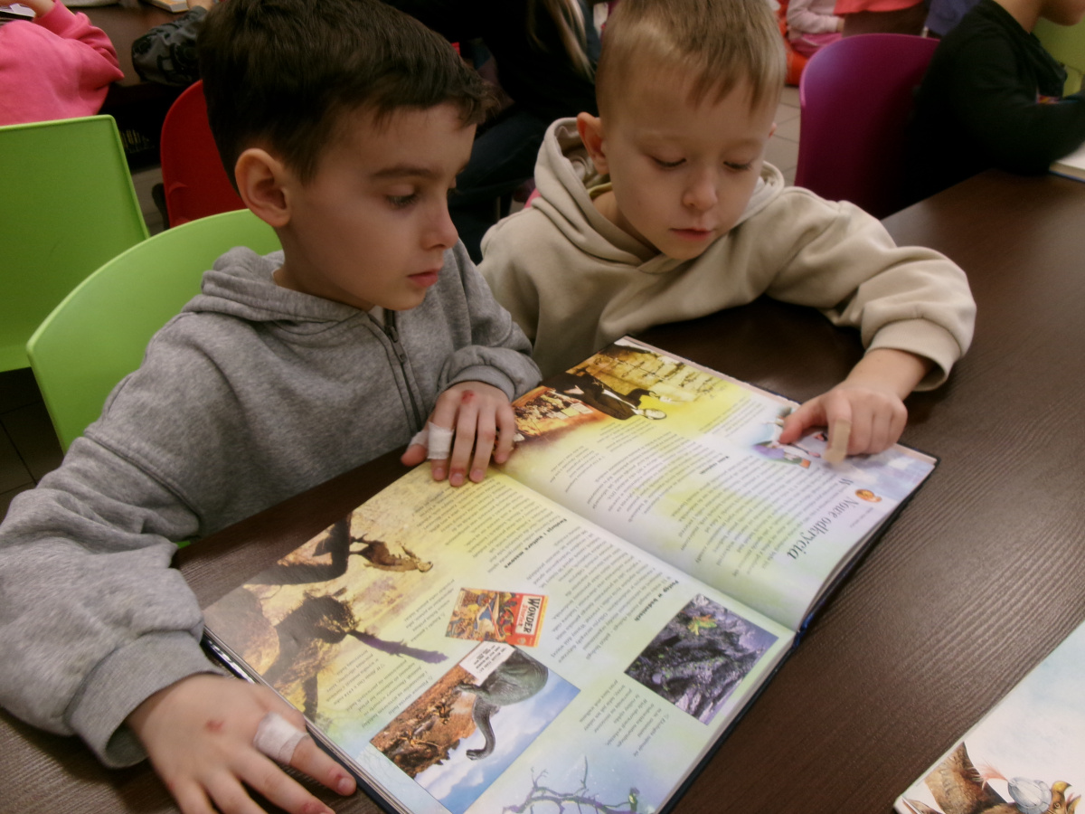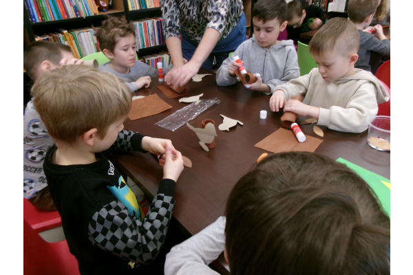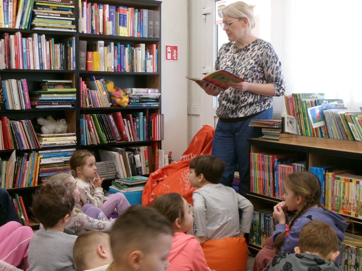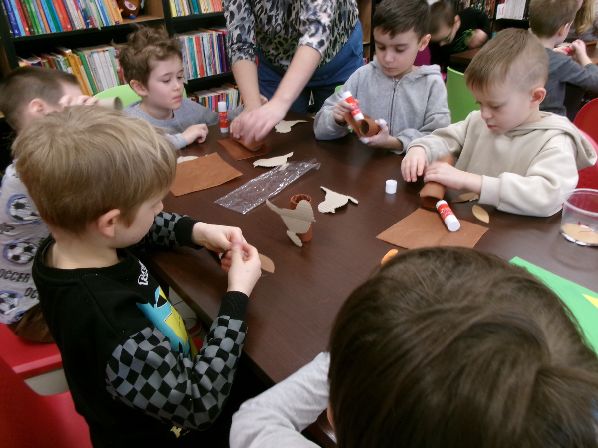 Największą atrakcją okazała się wyprawa między regały pełne kolorowych książek. Dzieci mogły oglądać ilustracje, wyszukiwać znane postacie i odkrywać zupełnie nowe tytuły. Pani bibliotekarka przeczytała nam również krótką opowieść, która wprowadziła wszystkich w bajkowy nastrój. Na podstawie wysłuchanej bajki dzieci wykonały pracę plastyczną: wróbelka Elemelka. To była piękna, inspirująca wycieczka, która pokazała dzieciom, że biblioteka to miejsce pełne przygód, ciekawostek i magicznych historii.