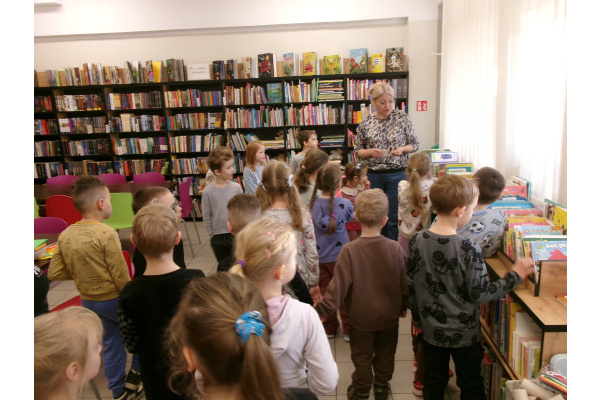 Nasze przedszkolaki wybrały się na wyjątkową wycieczkę do pobliskiej biblioteki w Starym Fordonie. Po wejściu do biblioteki przywitała nas pani bibliotekarka, która opowiedziała dzieciom, czym jest biblioteka, jak dbać o książki i dlaczego warto je czytać.