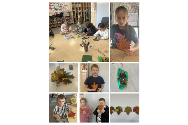 "Gdyby rok schowany był w zegarze, jesień byłaby magiczną godziną"... Świetliczaki ukazały, że to jedna z najpiękniejszych pór roku. W ramach zajęć dzieci poznawały zmiany zachodzące w przyrodzie, przypomniały sobie jak zwierzęta przygotowują się do zimy, dlaczego liście zmieniają kolor oraz jak należy zadbać o odporność organizmu. Uczniowie mieli okazję wykazać się wiedzą na temat nowej pory roku poprzez rozwiązywanie zagadek, krzyżówek, zadań i quizów na tablicy interaktywnej. Aktywnie brały udział we wszystkich zorganizowanych zajęciach, a wykonywane prace plastyczne rozwijały kreatywność i ozdobiły przestrzeń sali świetlicy.